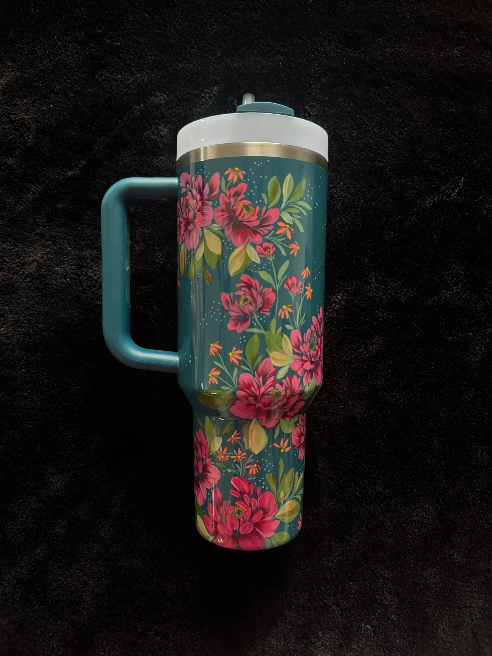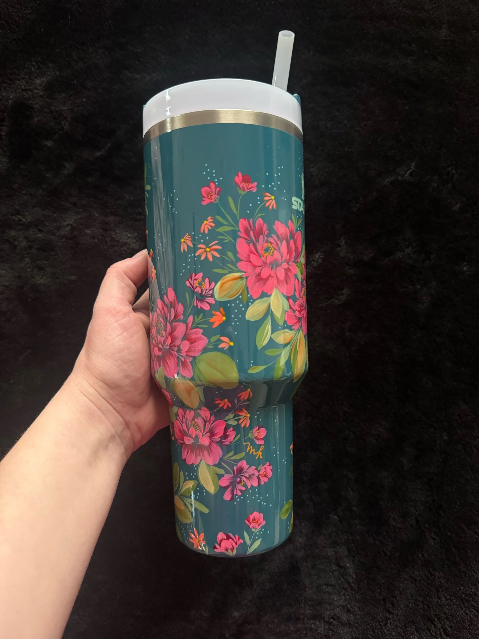 Hand painted with love & attention to detail, no two cups will ever be exactly alike. After spending time painting, this tumbler was powder coated individually to seal the art. Powder coating is a high heat chemical process which creates a strong barrier to keep the art safe. This tumbler is chip and scratch resistant.