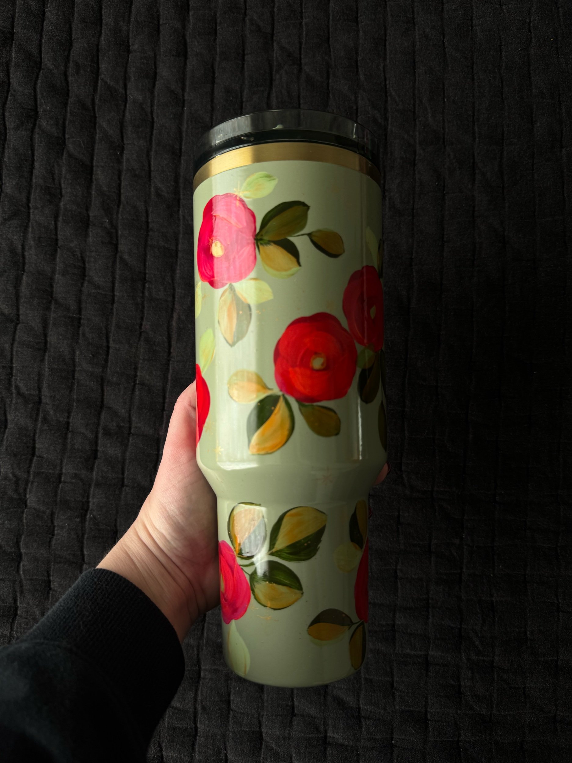 Hand painted with love & attention to detail, no two cups will ever be exactly alike. After spending time painting, this tumbler was powder coated individually to seal the art. Powder coating is a high heat chemical process which creates a strong barrier to keep the art safe. This tumbler is chip and scratch resistant as well as dishwasher safe. For best care practices, I recommend following the manufacturer’s washing recommendations.