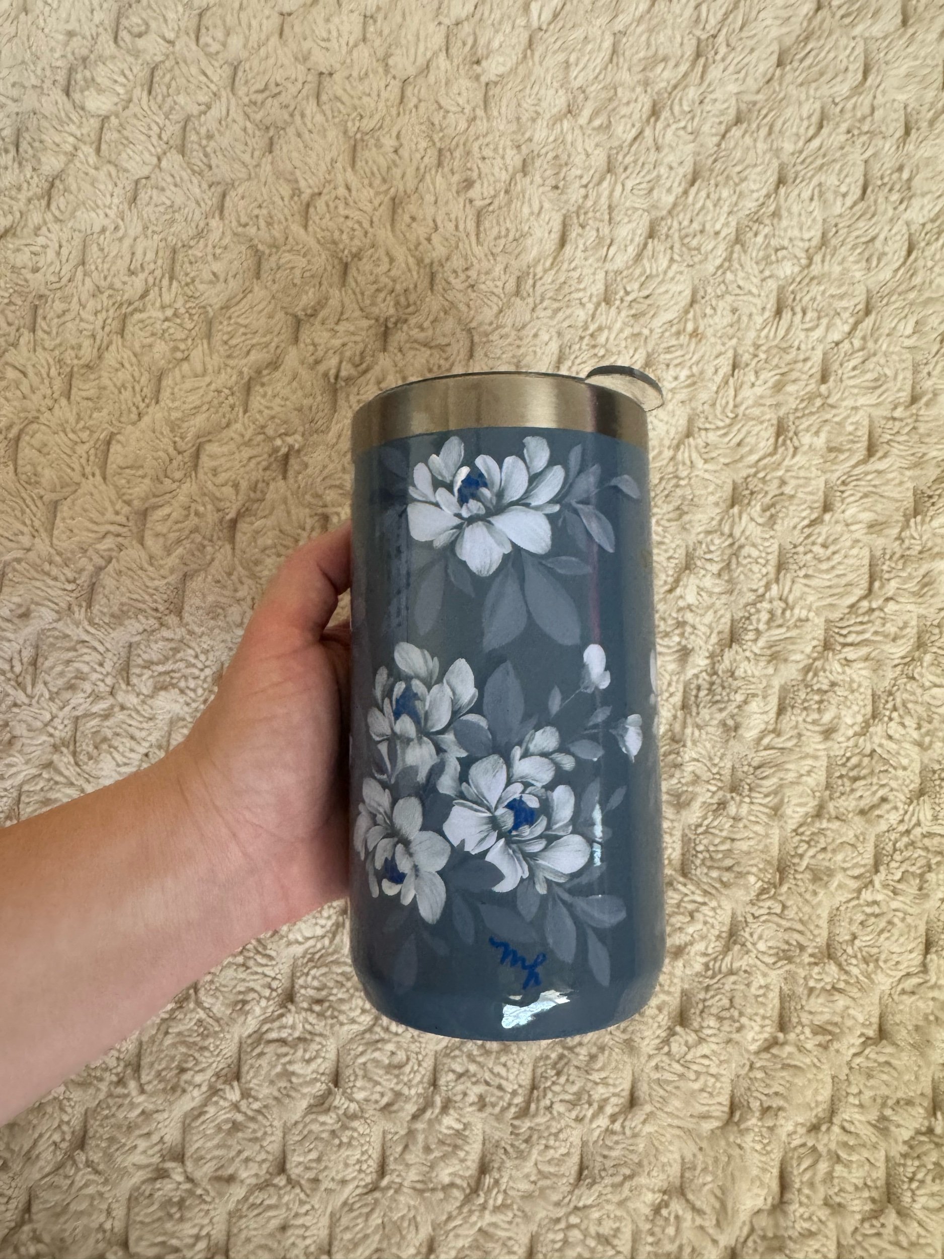 Hand painted with love & attention to detail, no two cups will ever be exactly alike. After spending time painting, this tumbler was powder coated individually to seal the art. Powder coating is a high heat chemical process which creates a strong barrier to keep the art safe. This tumbler is chip and scratch resistant.