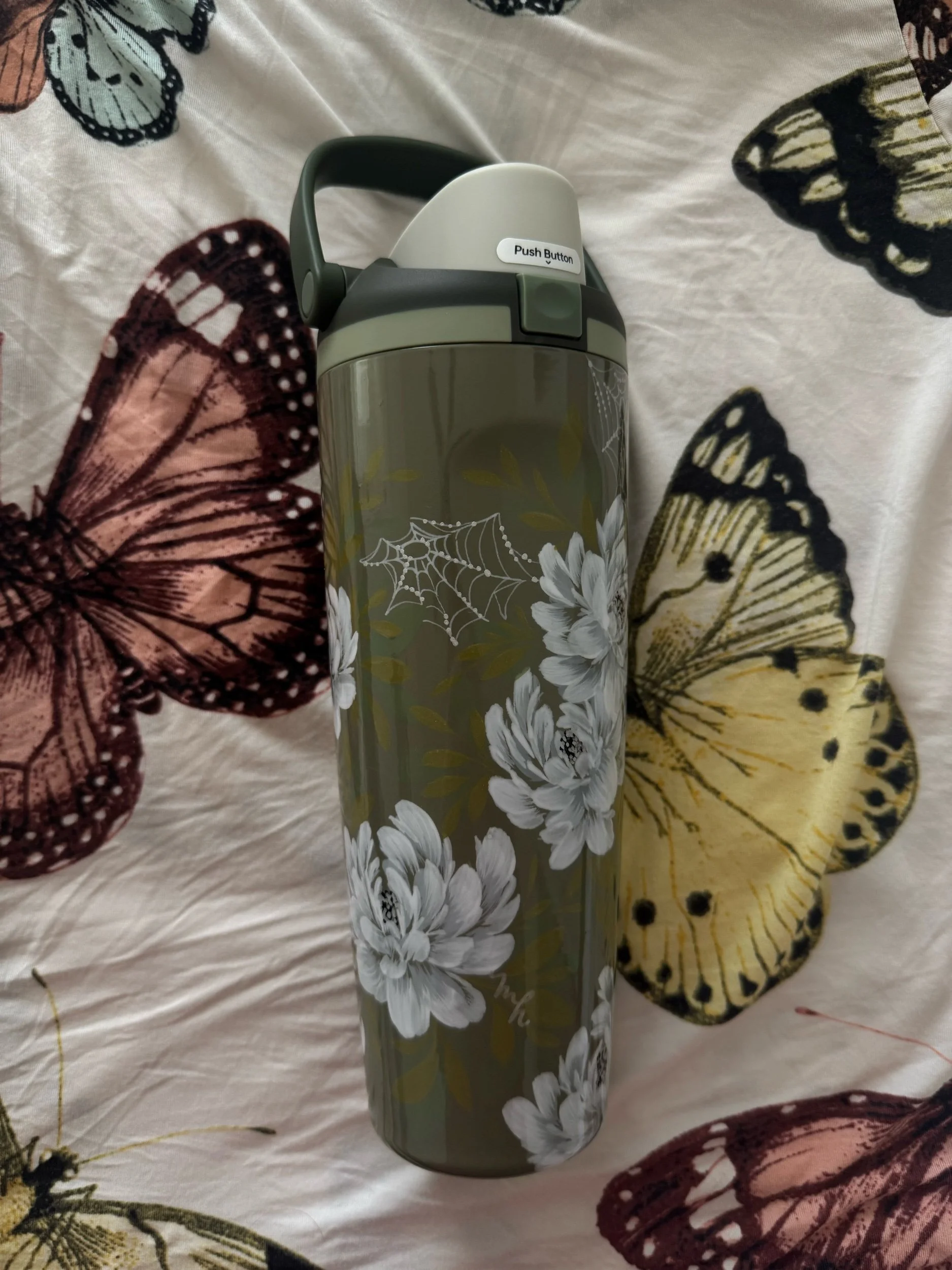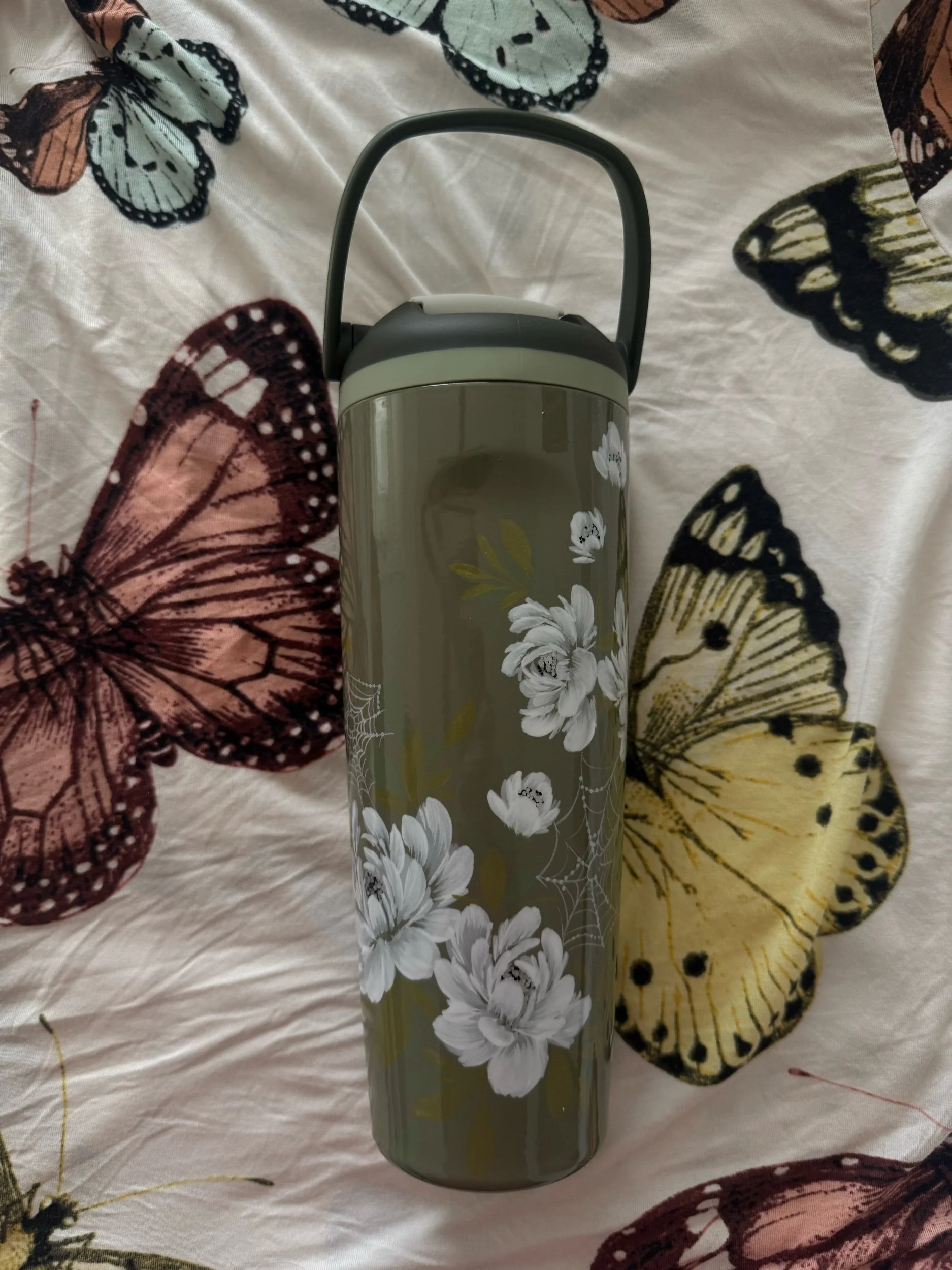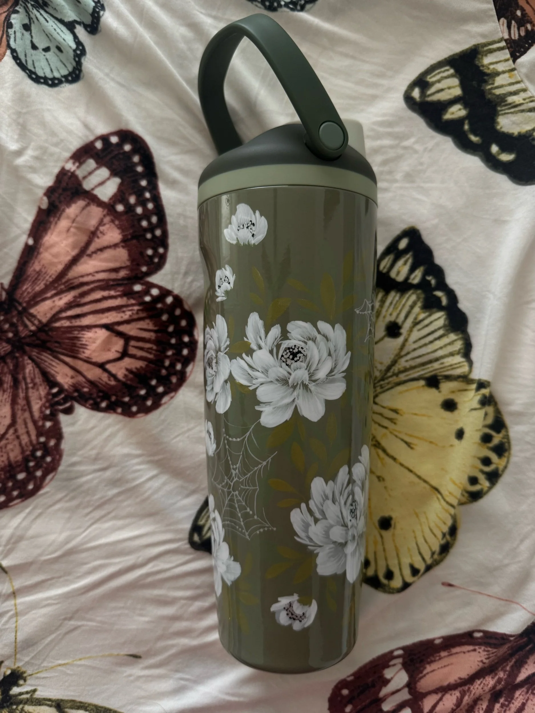 Hand painted with love & attention to detail, no two cups will ever be exactly alike. After spending time painting, this tumbler was powder coated individually to seal the art. Powder coating is a high heat chemical process which creates a strong barrier to keep the art safe. This tumbler is chip and scratch resistant.