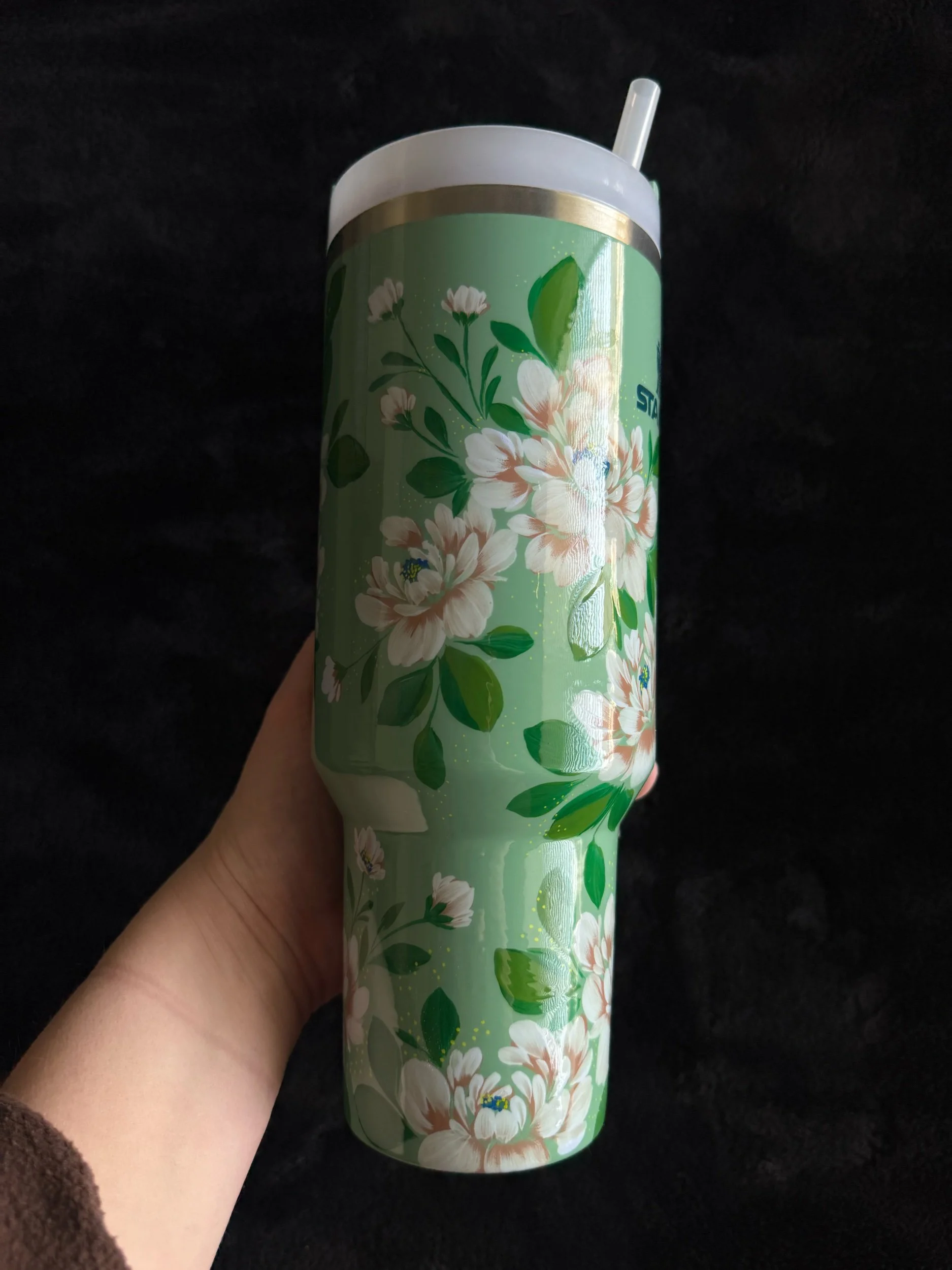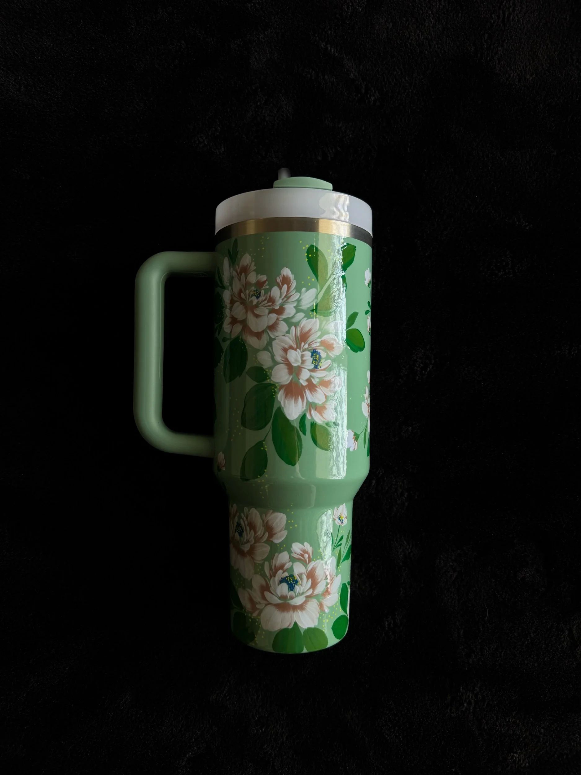 Hand painted with love & attention to detail, no two cups will ever be exactly alike. After spending time painting, this tumbler was powder coated individually to seal the art. Powder coating is a high heat chemical process which creates a strong barrier to keep the art safe. This tumbler is chip and scratch resistant.