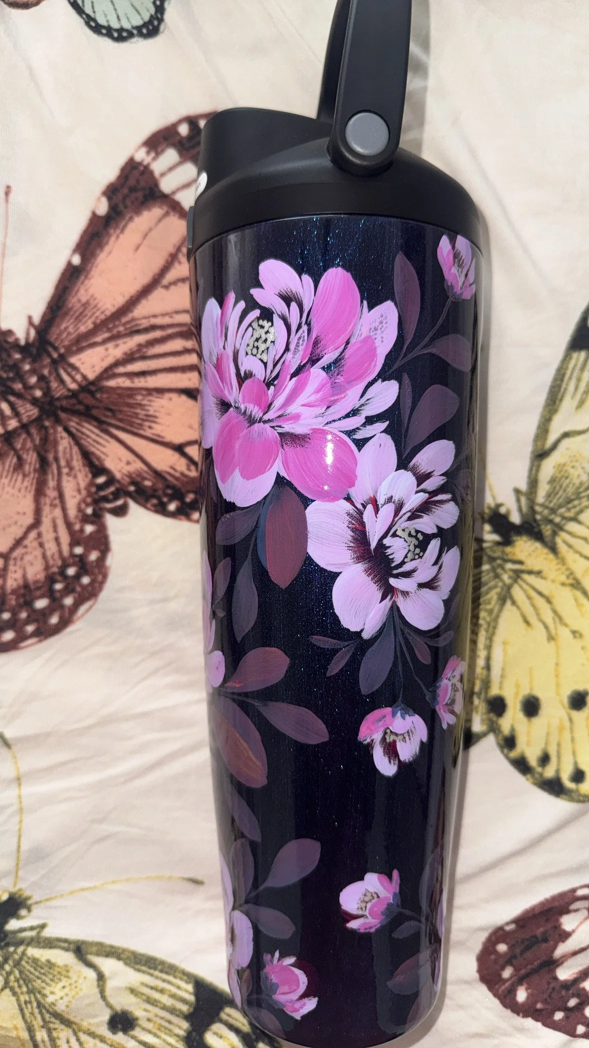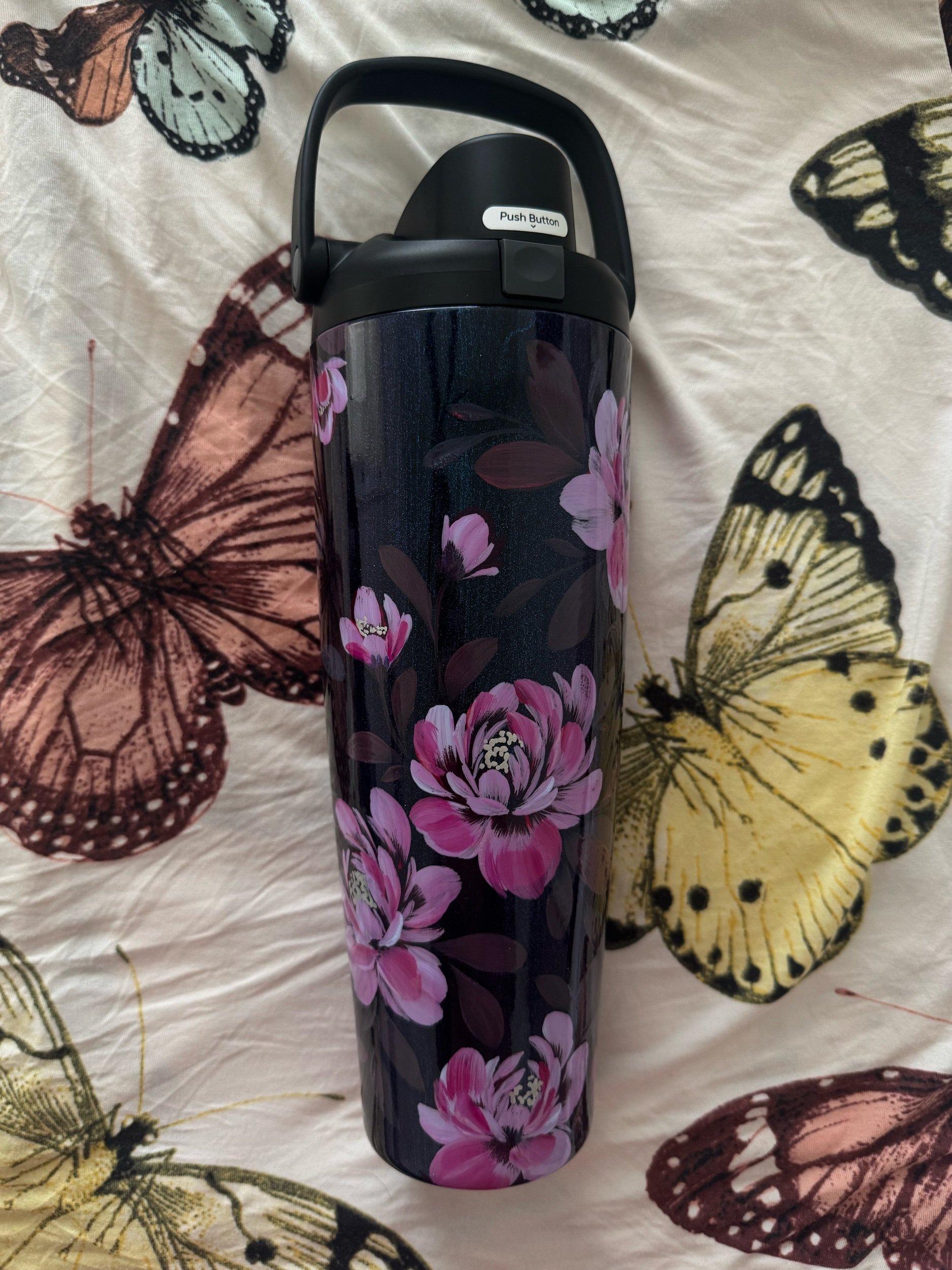 Hand painted with love & attention to detail, no two cups will ever be exactly alike. After spending time painting, this tumbler was powder coated individually to seal the art. Powder coating is a high heat chemical process which creates a strong barrier to keep the art safe. This tumbler is chip and scratch resistant.