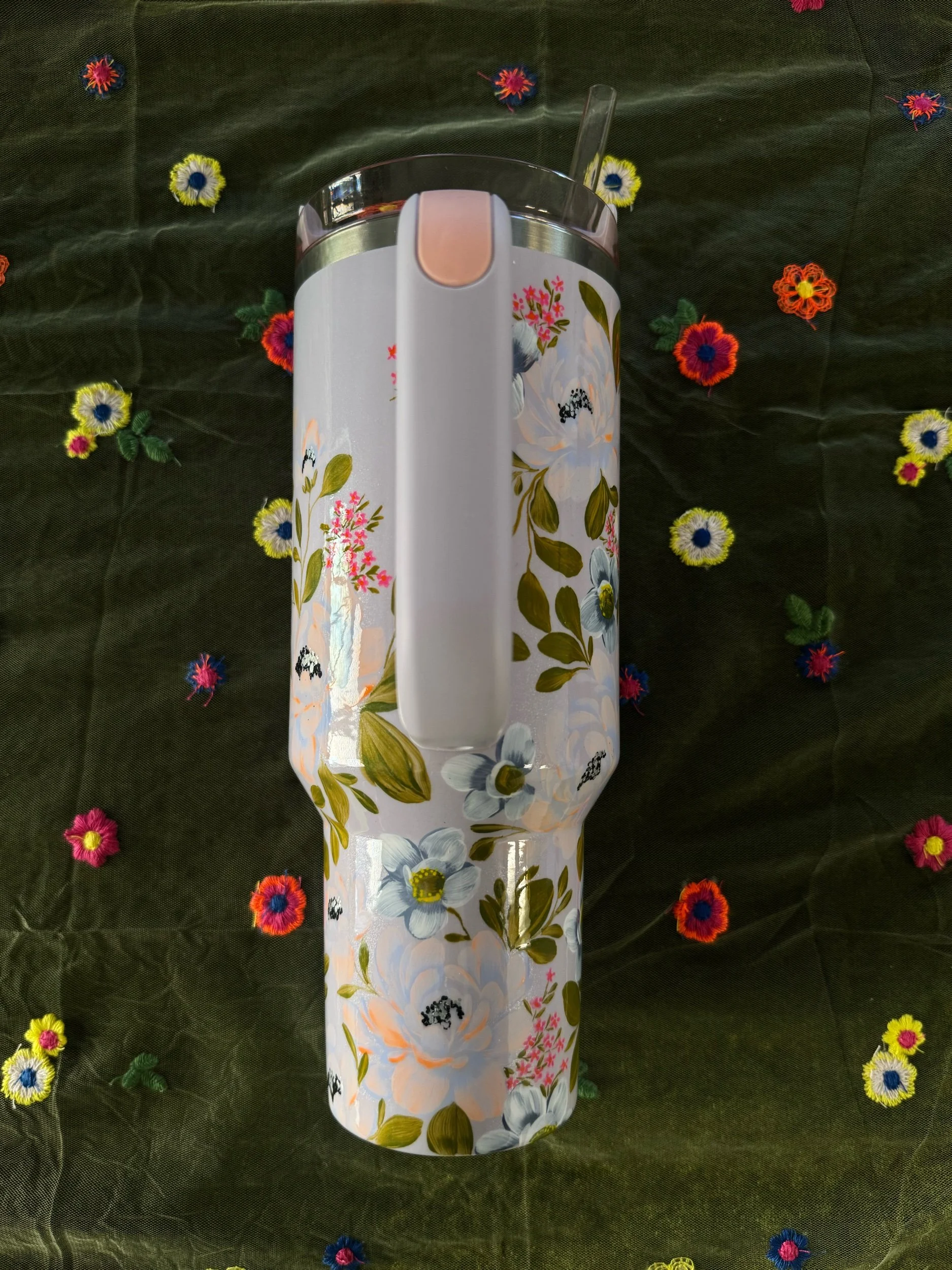 Hand painted with love & attention to detail, no two cups will ever be exactly alike. After spending time painting, this tumbler was powder coated individually to seal the art. Powder coating is a high heat chemical process which creates a strong barrier to keep the art safe. This tumbler is chip and scratch resistant.