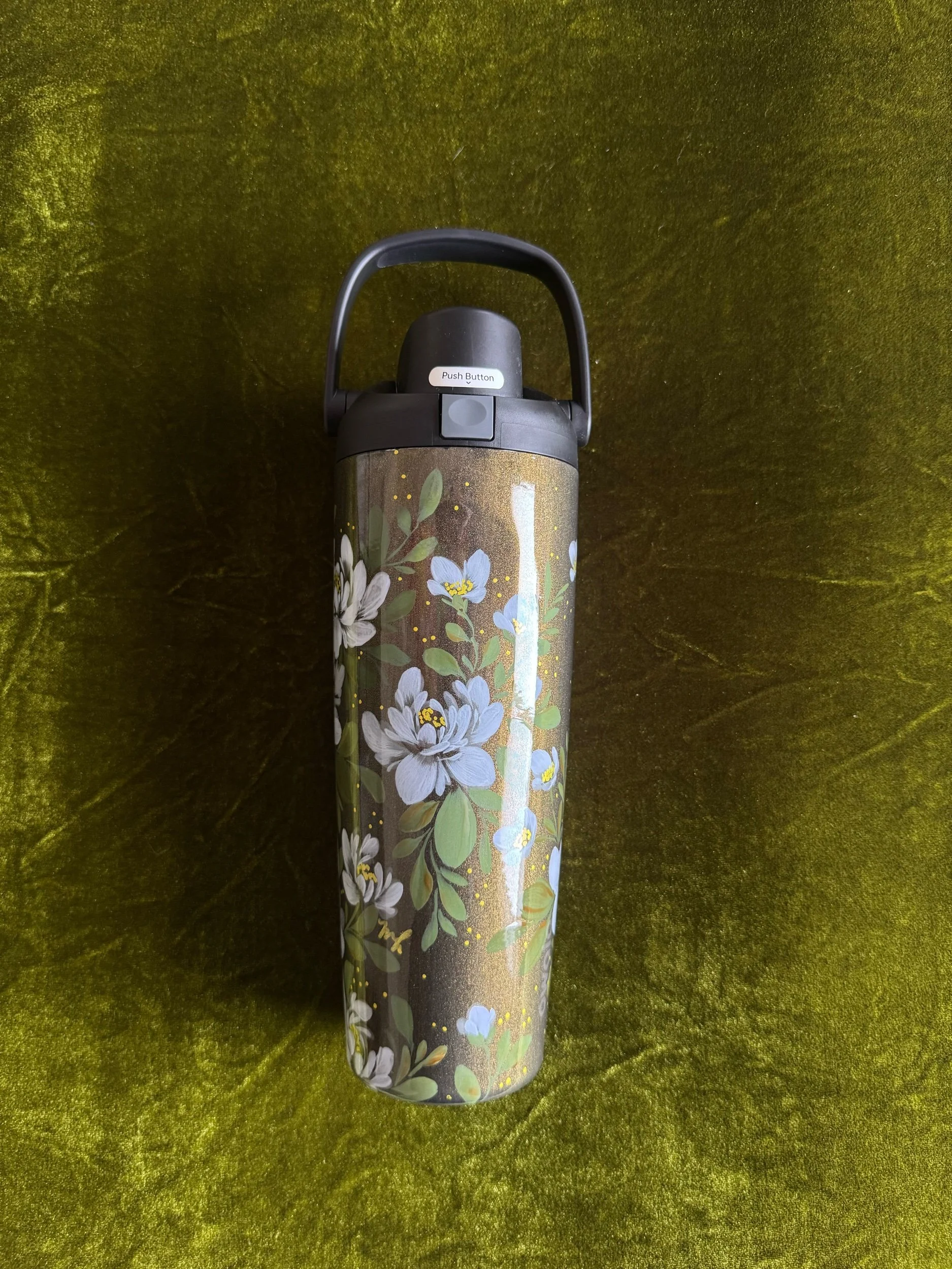 Hand painted with love & attention to detail, no two cups will ever be exactly alike. After spending time painting, this tumbler was powder coated individually to seal the art. Powder coating is a high heat chemical process which creates a strong barrier to keep the art safe. This tumbler is chip and scratch resistant.