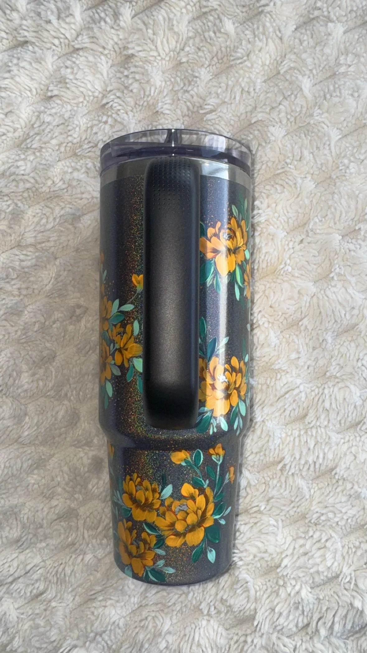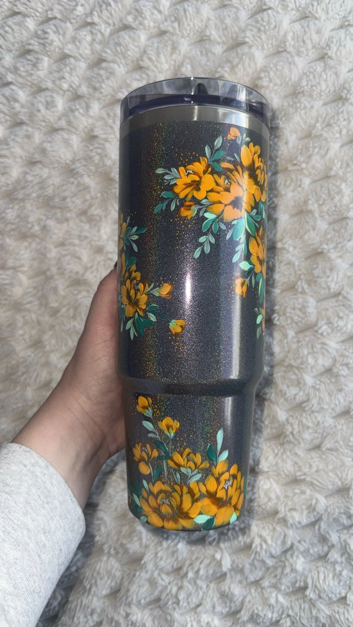 Hand painted with love & attention to detail, no two cups will ever be exactly alike. After spending time painting, this tumbler was powder coated individually to seal the art. Powder coating is a high heat chemical process which creates a strong barrier to keep the art safe. This tumbler is chip and scratch resistant as well as dishwasher safe. For best care practices, I recommend following the manufacturer’s washing recommendations.